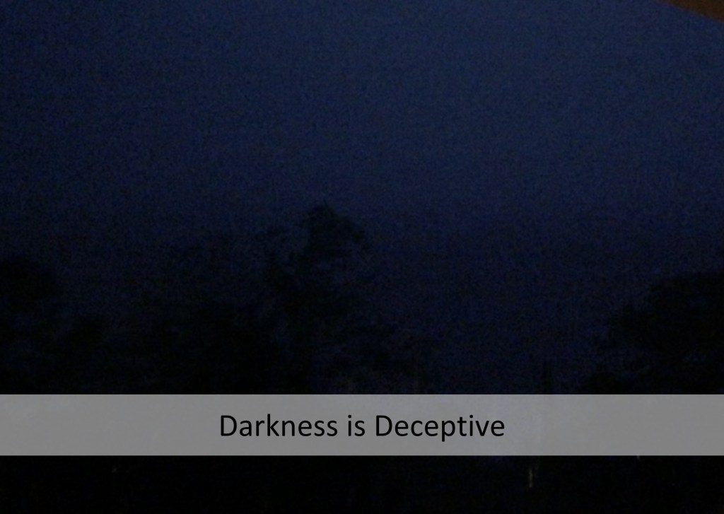 The darkness is deceptive. I know that it lies to my eyes, and yet I am afraid to do anything about it. Even though I am afraid, hiding under the blankets brings me comfort and control. Maybe I will just wait this way until the light comes to me. The breaking of dawn, or even someone coming to check on me, will solve my problem. Yet, should I let the enemy win by wasting all this time in sleepless fear? I have access to light. Just over there, across the room is a switch.